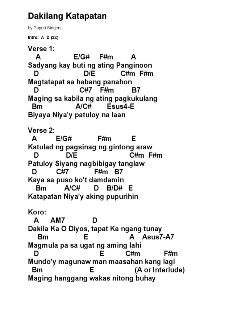 Dakilang Katapatan Chords And Lyrics Docx Dakilang Katapatan Papuri Singers Intro Dm7 U2013 C E U2013 G F Dm7 C E G F F G C G B Am7 Gm7 Bb C Sadyang Course Hero For your search query dakilang katapatan with lyrics karaoke mp3 we have found 1000000 now we recommend you to download first result dakilang katapatan papuri singers with lyrics mp3.