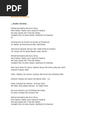 Muhammad Nabina Lirik Arab / Dialah sang kekasih yang bermula dari mekah tapi cahayanya memancar melintasi kota madinah.